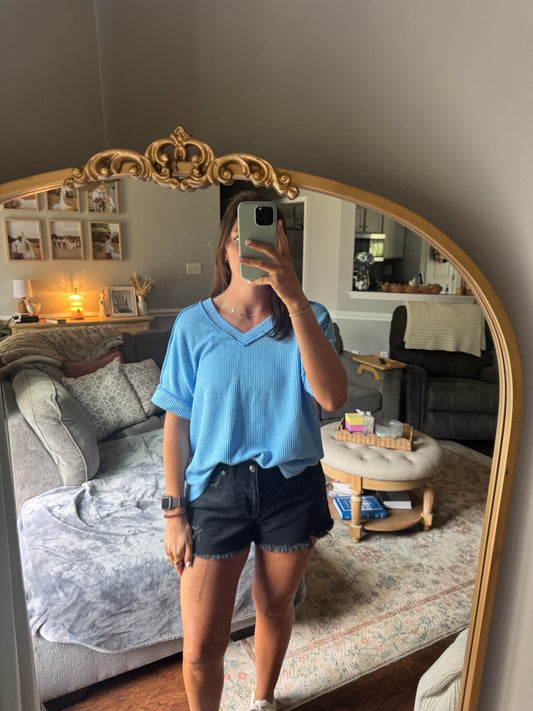RAISED RIB SHORT SLEEVE V NECK TOP