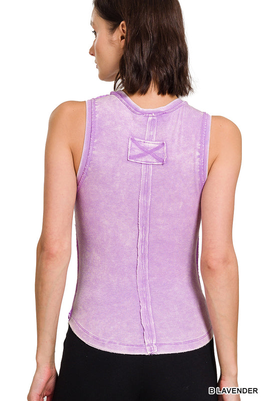WASHED RIBBED SEAMLESS BRA PADDED V-NECK TANK TOP