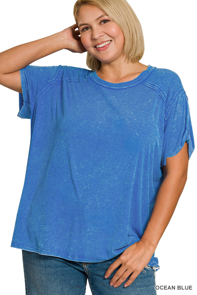 Plus washed ribbed short sleeve top